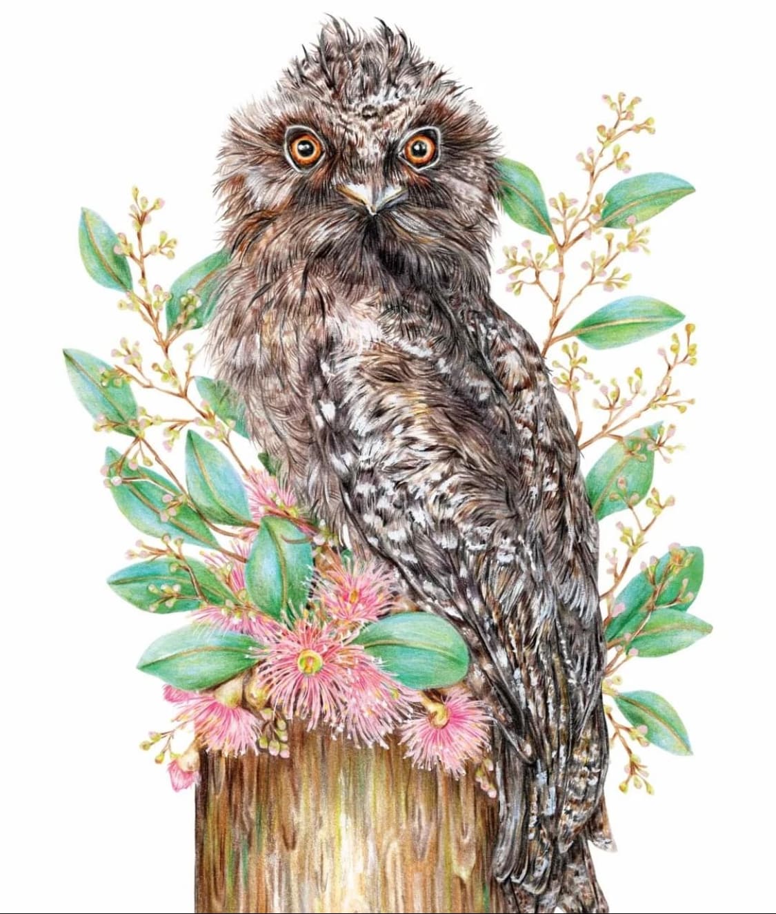 She started with ‘Bird Bouquets’, a series of pencil artworks featuring iconic Aussie birds perched amongst vibrant native Australian flowers. I’ve got a soft spot for both and, trust me, putting the fan-favourite 'bin chicken' aka Australian White Ibis atop of a bouquet of proteas and banksia is genius. And don't even get me started on the Tawny Frogmouth! The collection is still growing and is featured as part of her 2025 calendar (available for pre-order with some cheeky gifts thrown in here).