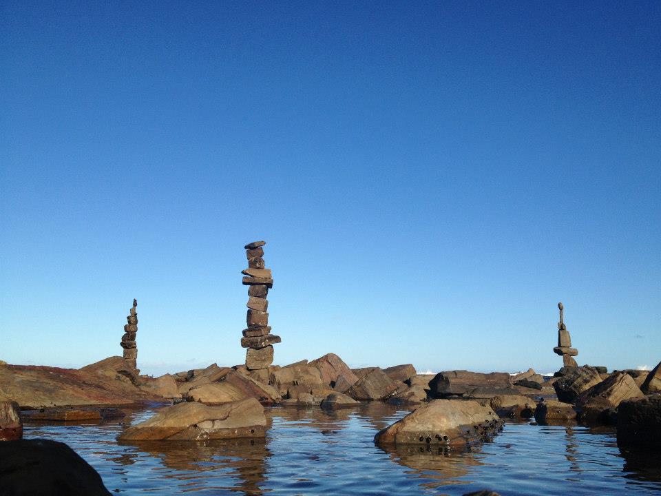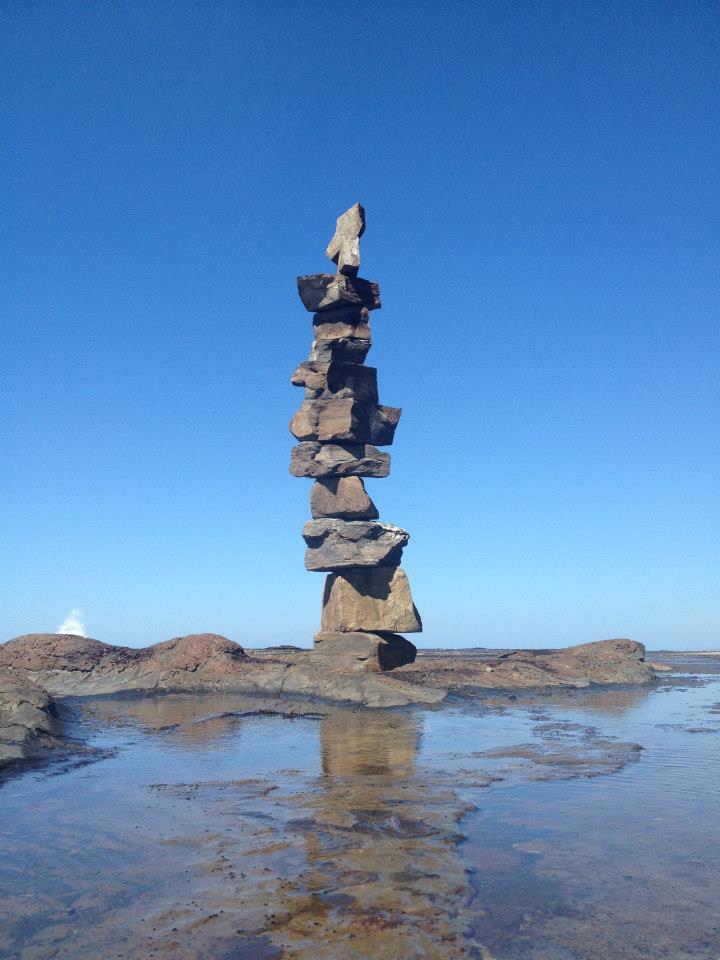 Locals often see the work of Wombarra sculptor Stephen Hamper on the tide lines of the northern Illawarra, slowly getting smaller and smaller until the ocean waves reclaim them. He never signs his name or leaves evidence of his being there apart from the strange totem-like piles of balanced rocks. It is his ‘gift’ to the community of beach walkers and seagulls that wander around the rock platforms of the northern suburbs.
