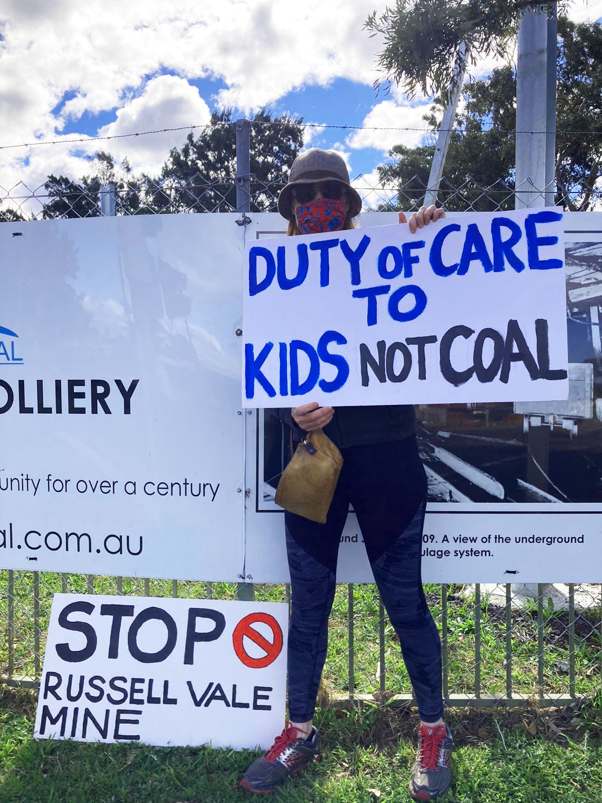 Sallie Moffatt from Coledale is an artist who loves walking and working in our surrounding bushland. She wasn’t active in the Extinction Rebellion until recently but was one of many local residents who have joined the decentralised picket outside Russell Vale Coal Mine following the news it will reopen.