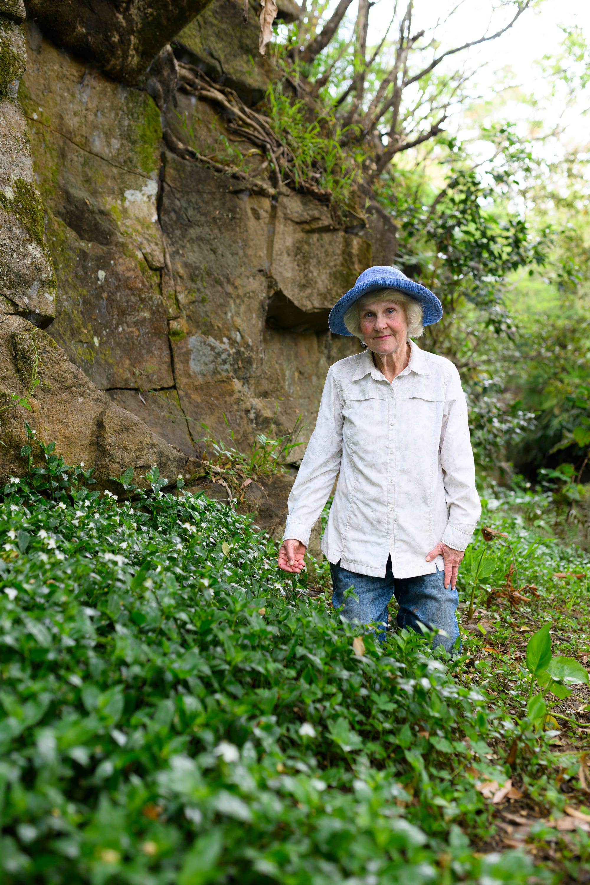 Weeds threaten native plants and animals, and wreak havoc in agriculture, costing Australia’s economy $5 billion per year, according to CSIRO. The national science agency continues to search for biological control agents to manage the problem, and Merilyn has tried one of their fixes: a leaf-spotting fungus (Kordyana brasiliensis) that targets trad, the South American groundcover that grows in dense mats, clogging water courses and outcompeting native plants.