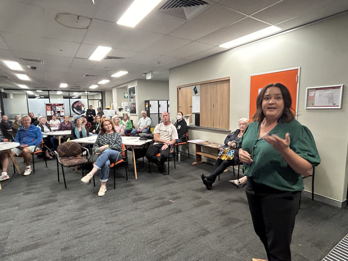 Wollongong’s 2023 Citizen of the Year, Sally Stevenson, recalled how she made a promise to the Woolyungah leadership team one morning, when a small group of Indigenous and non-Indigenous Yes23 campaigners watched the sunrise over Dharawal country just before the referendum, to continue her commitment to the Uluru Statement of the Heart, regardless of the outcome. She said that the Friends of WIC was an opportunity for her and this group to do that – to support activities and events of the Illawarra Aboriginal and Torres Strait Islander communities, to support truth telling – and importantly, to hold ourselves accountable to our personal commitment to the principles of the Voice.