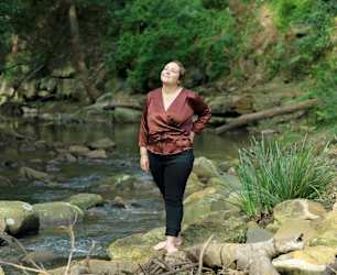 "I live with my husband, seven-year-old son, toy poodle Billy Ray and five chickens in Bulli, with two teenage stepchildren floating in and out. Apart from travelling, growing up as a city girl, I now prefer spending time in nature... at the beach, camping, or going on bush walks with the family, but I still enjoy my trips into Sydney every few weeks for work, meeting friends, or seeing a great show."