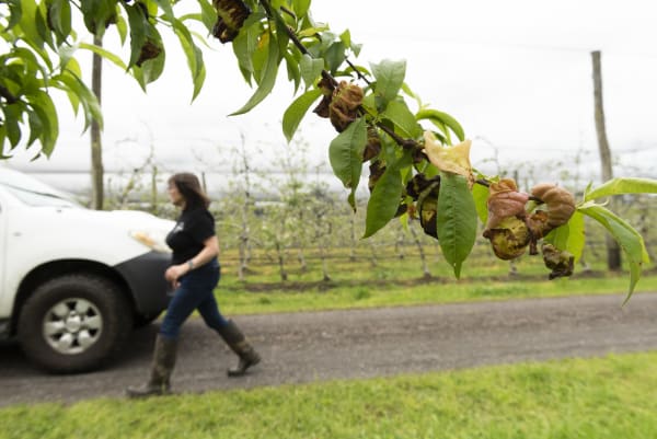 “There’s a leaf curl problem, which is a fungal disease, on that block,” Jo says. “So it's not the whole orchard. We're talking about one block of trees, it could be 1000 trees where we'll probably be down – where 50% of our production is lost.”