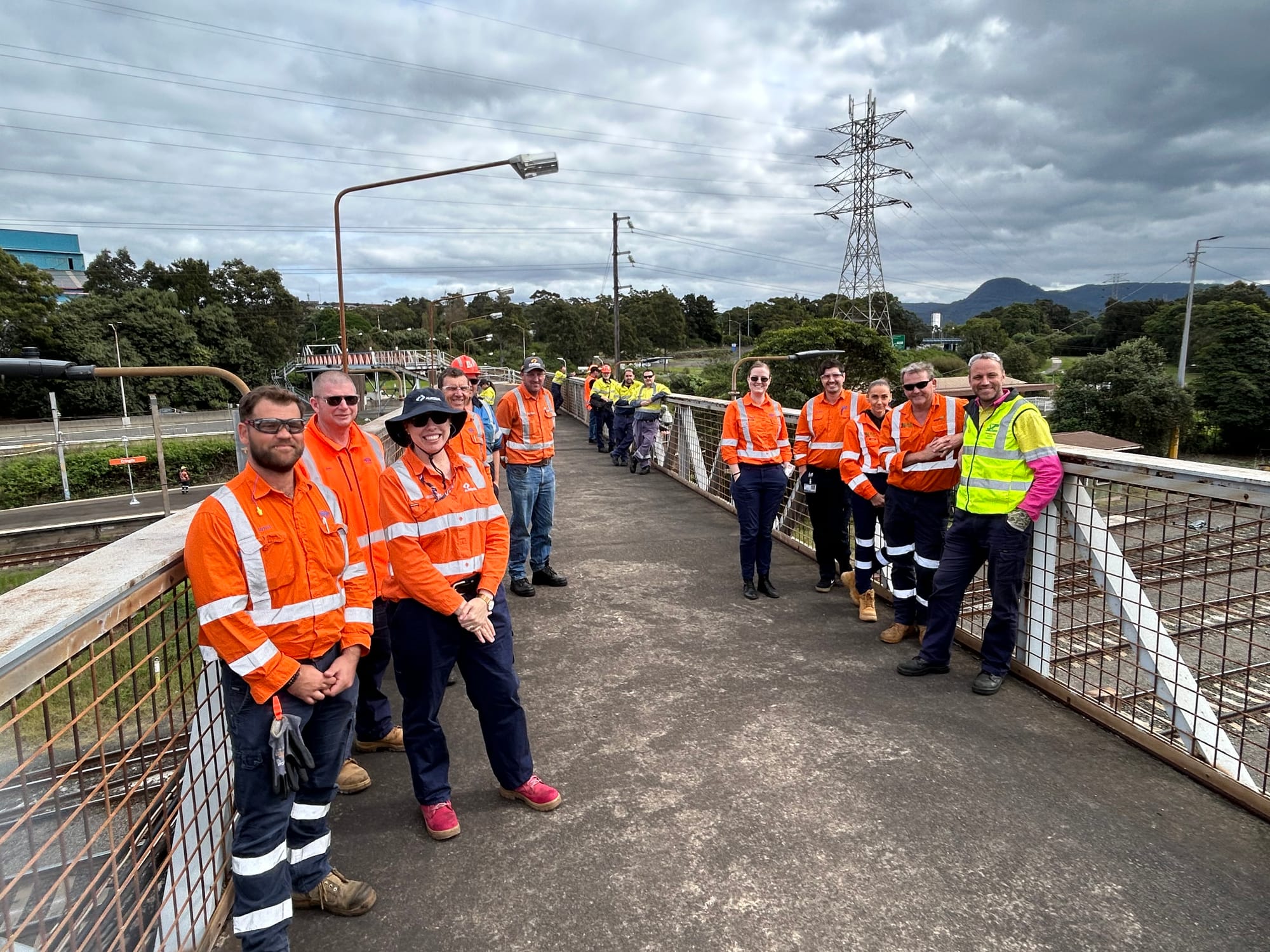 At midday on Thursday, BlueScope staff and rail workers gathered on the footbridge above the Cringila rail siding as six locomotives sounded their horns in a noisy tribute to those impacted by trauma on our railways and to send a message to the community that it's OK to have conversations about mental health.