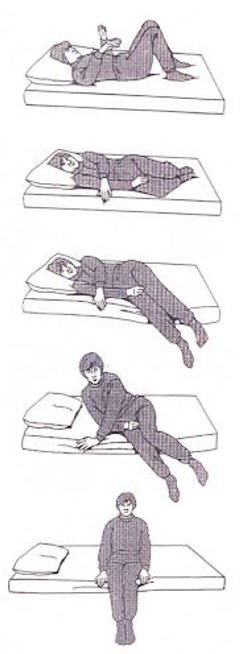 - Avoid any sit-up motion, such as by rolling through your side to get in and out of bed.