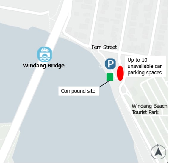 Work will be based out of the compound site within the Fern Street boat ramp car park, on the bridge's north eastern side.