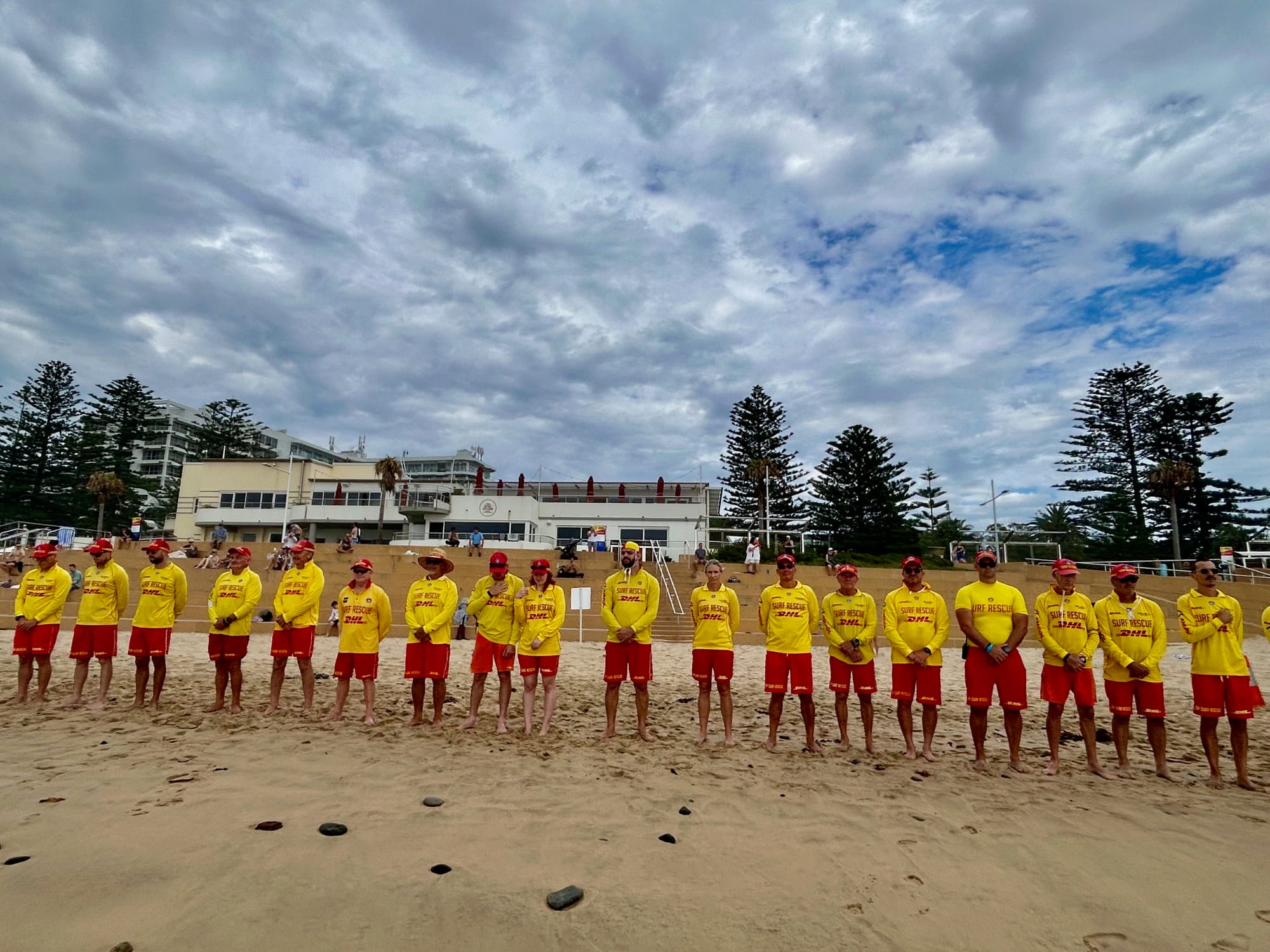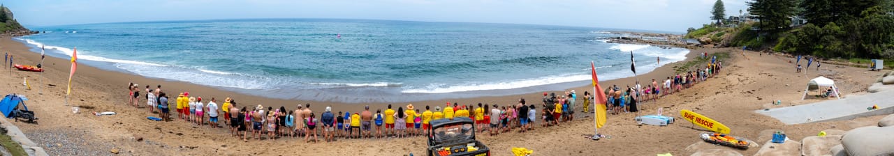 Thirroul lifesavers lined the beach in December. Photo thanks to John Dryden