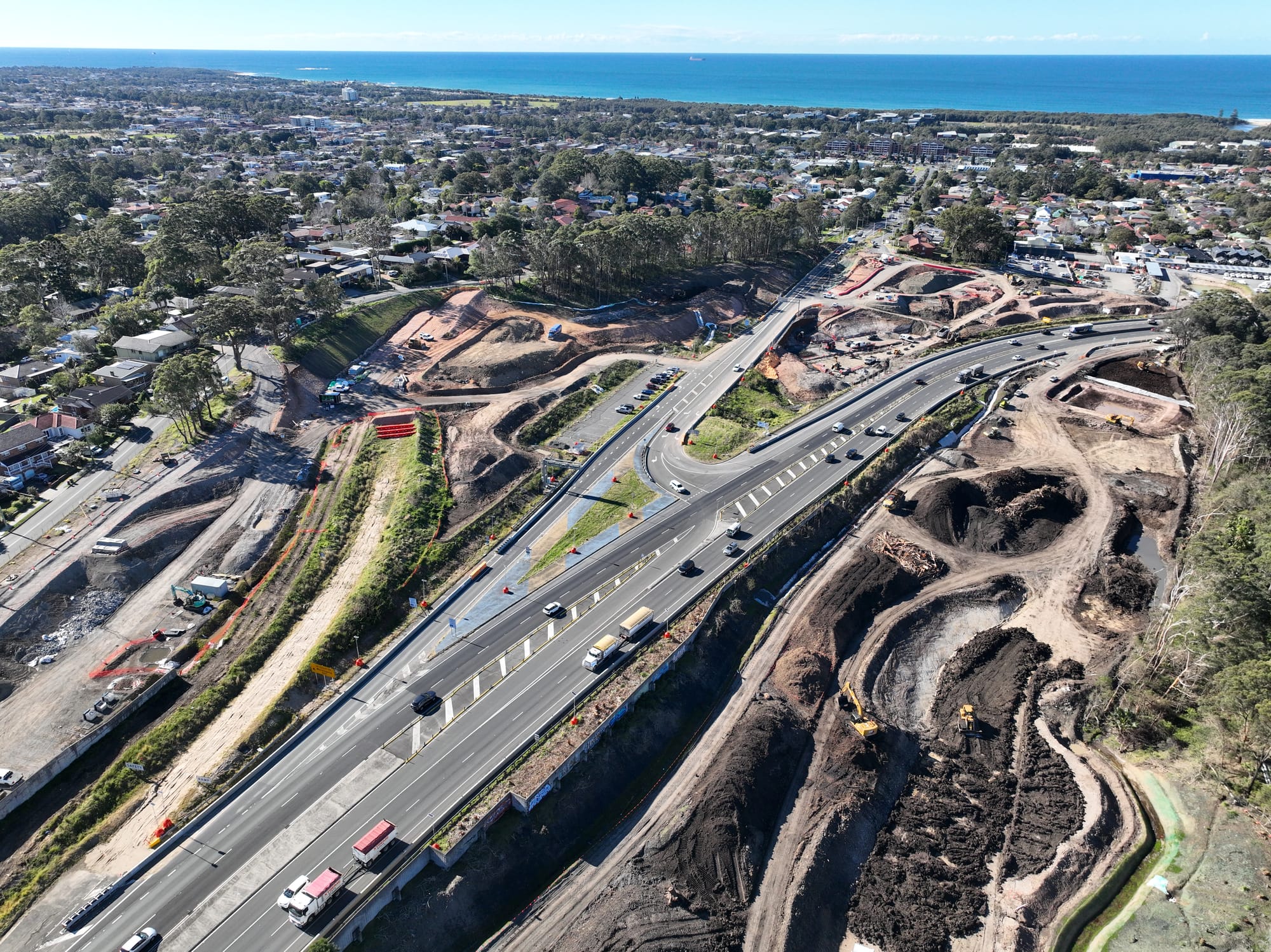 When complete, the new interchange at the base of Mount Ousley will provide improved connectivity, safety and efficiency on a busy and key corridor for freight and other traffic travelling between Sydney and the South Coast.