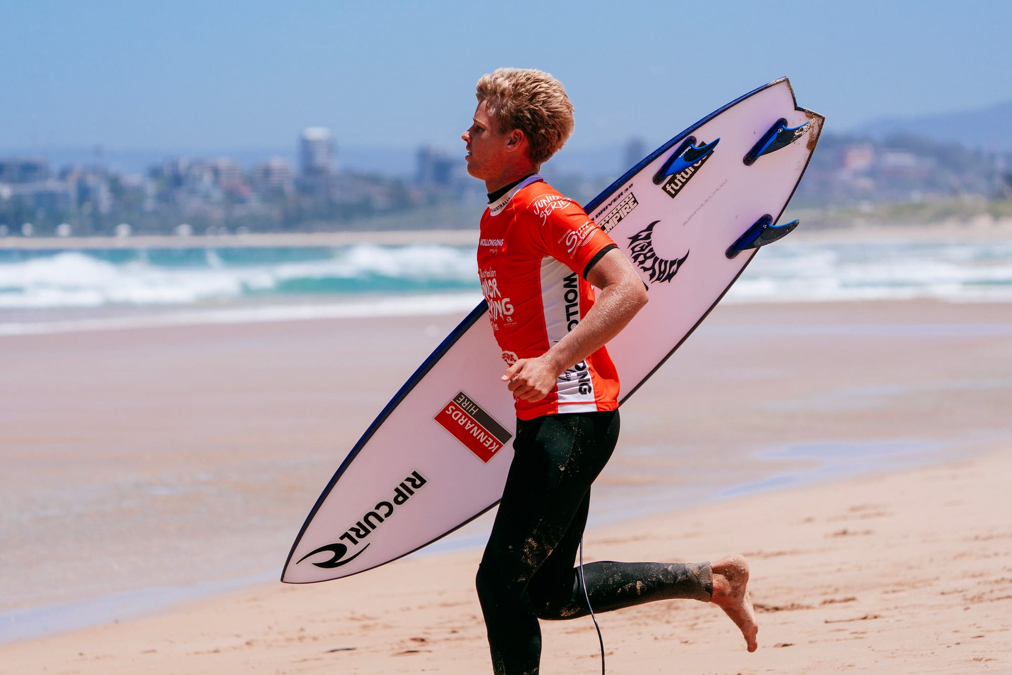 A member of Sandon Point Boardriders, Taj Air was among local surfers representing Illawarra Sports High School at the Australian Junior Surfing Titles in 2025. Photos: Surfing Australia