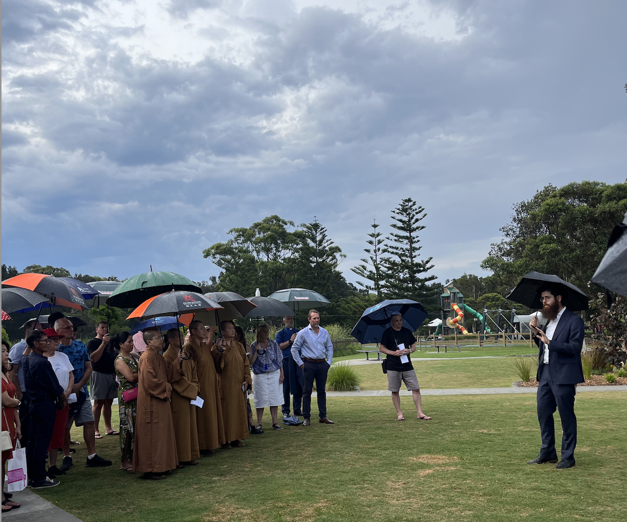 More than 200 people gathered at Wollongong’s Stuart Park last night for a remarkably multicultural Chanukah event. Rabbi Menachem Aron and the Jewish Community of Wollongong were joined by everyone from Buddhist monks to Seventh-day Adventists and a First Nations pastor, as people of many cultures and faiths turned out in a show of solidarity to witness the lighting of the Menorah.