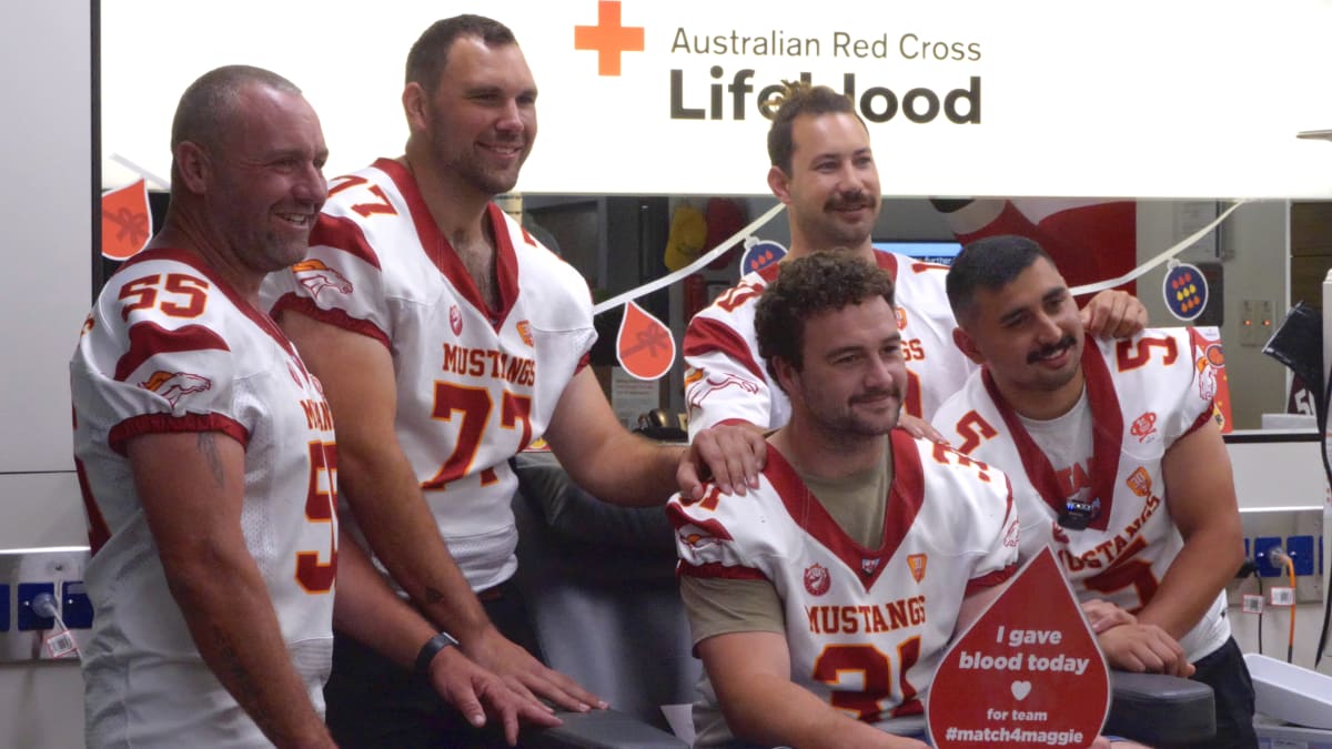 On Sunday, December 4, Wollongong’s gridiron team, the Mustangs, faced a very different kind of physical challenge. Seven players rolled up their sleeves to donate blood and sign up to the Australian Bone Marrow Donor Registry.