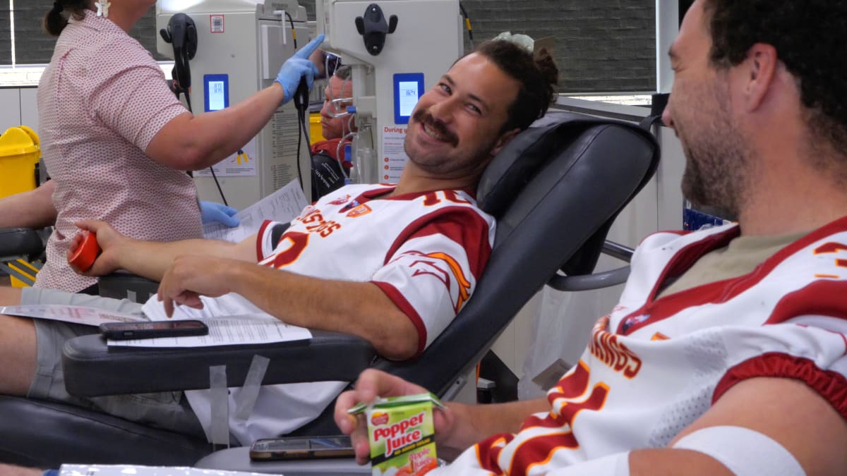 On Sunday, December 4, Wollongong’s gridiron team, the Mustangs, faced a very different kind of physical challenge. Seven players rolled up their sleeves to donate blood