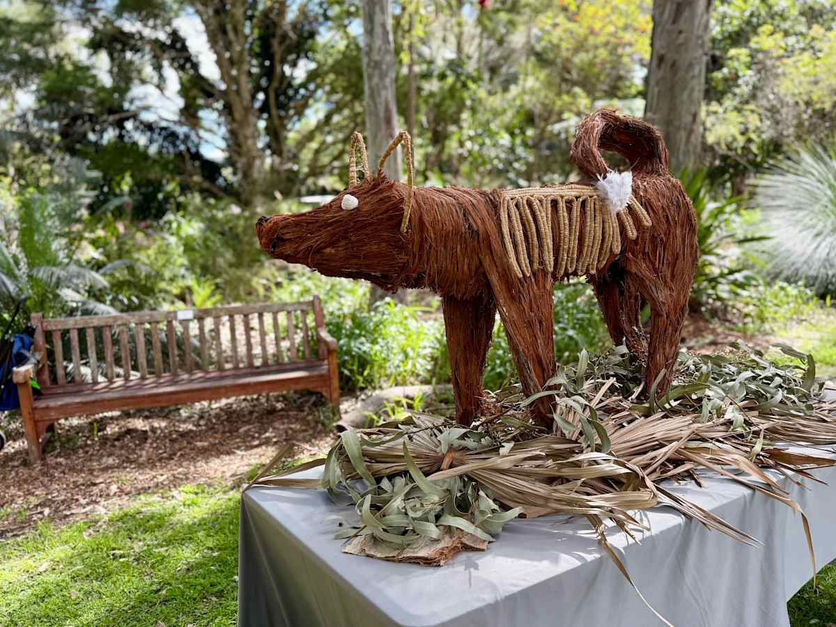 I expected to fill a couple of hours learning about the local environment and what we can do to help conserve it but by the time I sat down with Amethyst Downing, a First Nations Wandi Wandian woman with European/Irish heritage, I knew I was in for something special. She guided us through weaving Warrigal (dingo) pups, from a pile of vividly coloured fibres at our feet, while talking about the importance of the dingo in balancing ecosystems and the deep concerns about the use of 1080 poison in pest control.