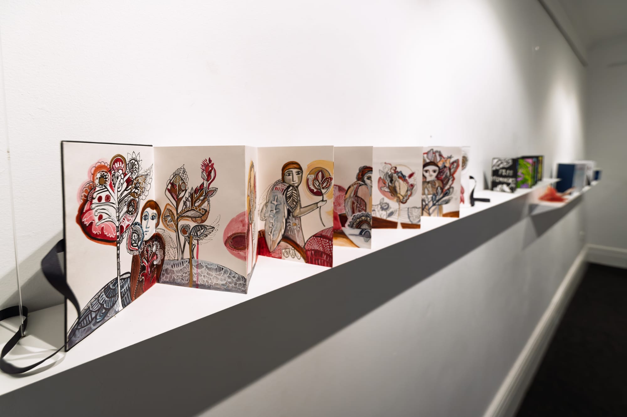 Curator Judy Bourke shared a personal connection to the medium, recalling that her introduction to artist books came during a workshop in Alice Springs with Brisbane-based artist Adele Outteridge. Since then, Judy has worked to celebrate the inclusivity, freedom and creativity that the medium provides.