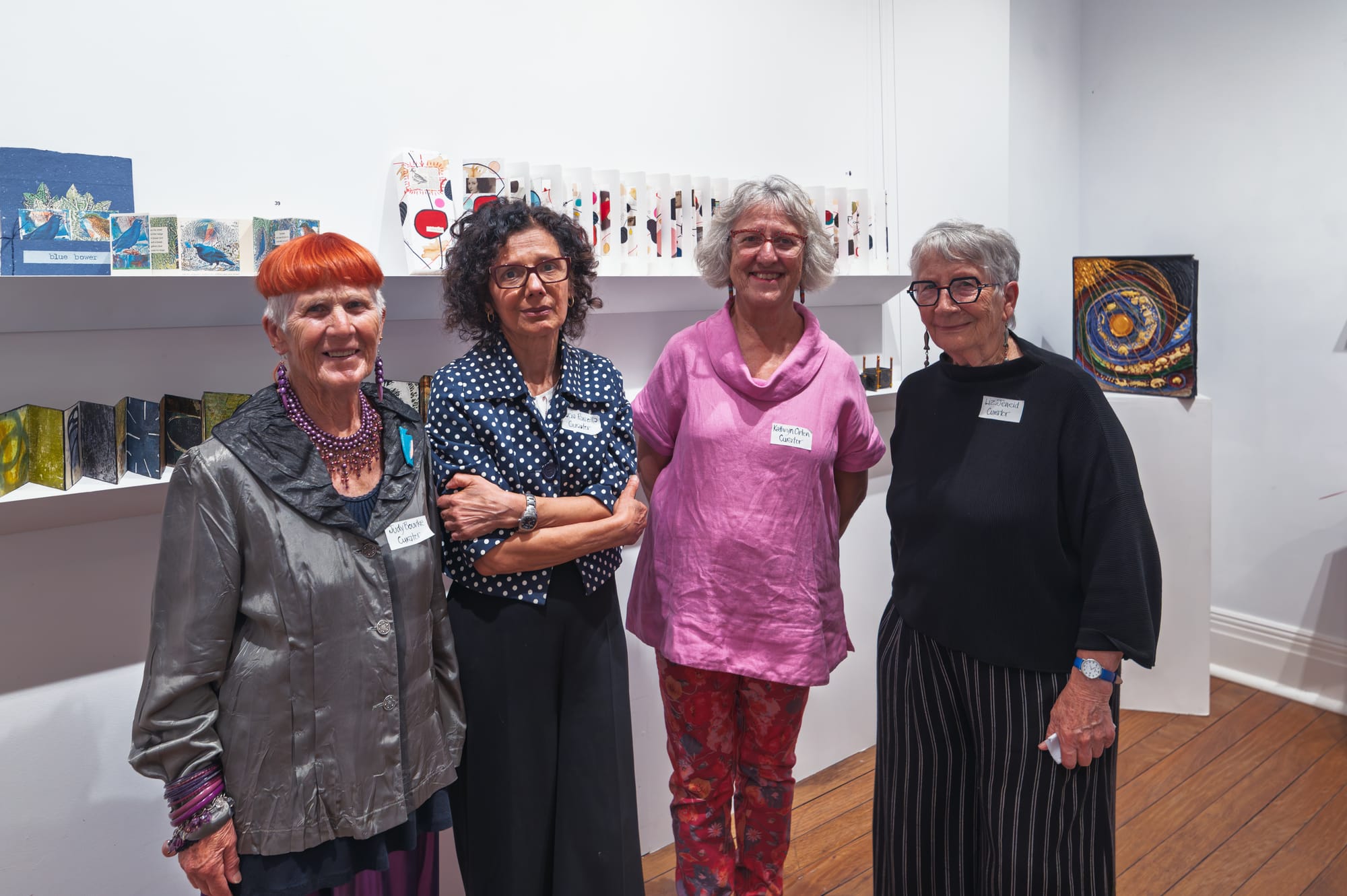 Crescendo 25 curators from L to R: Judy Bourke, Lucia Parrella, Kathryn Orton and Liz Jeneid with some of the works on show. Photo: Tyneesha Williams