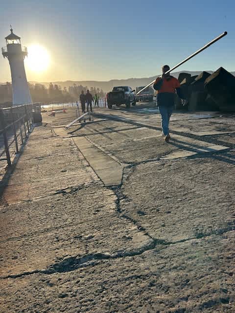 On Monday, a handful of fishermen were asked to leave the breakwall to allow work to commence on replacing the missing sections of fence.