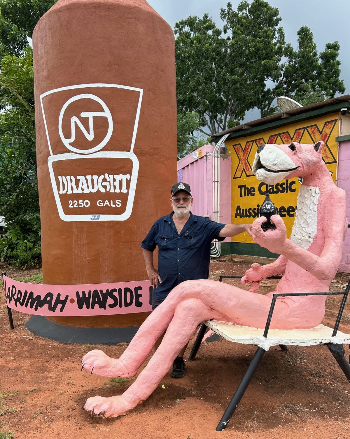 Since its relocation to Larrimah, the pub, originally known as the Wayside Inn, has had a number of name changes: The Giant Stubby, Lake Larrimah, the Larrimah Zoo and the Pink Panther, as it’s still known today. It’s a quirky outback history but once you’re there it really gets you in.