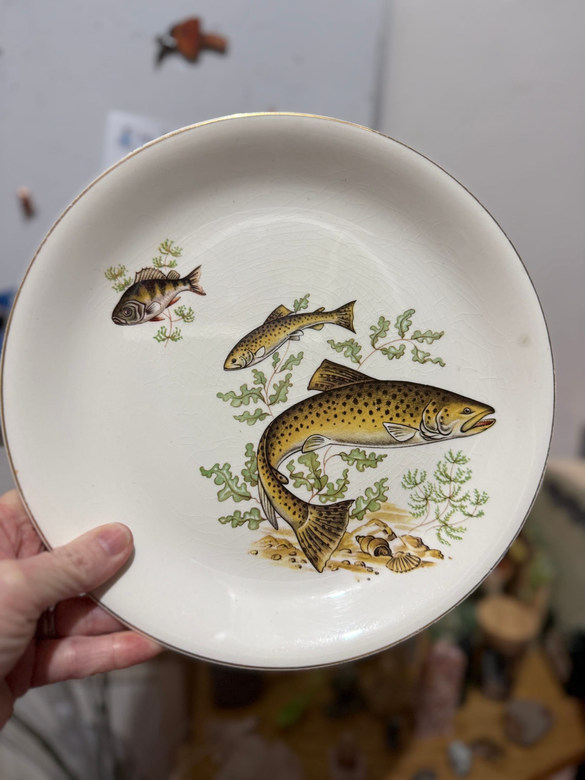 There’s a great range of kids clothes, books, great work clothes for men and women and some surprising finds up in the backroom. I grabbed a British Anchor fish plate which I’ve been hunting for, a gorgeous, vintage Saji plate which was ticketed at $5 and discounted to $2.50 and retails for around $45 … and reluctantly said no to a $25 trumpet. My husband scored a couple of as new business shirts for $7 each.
