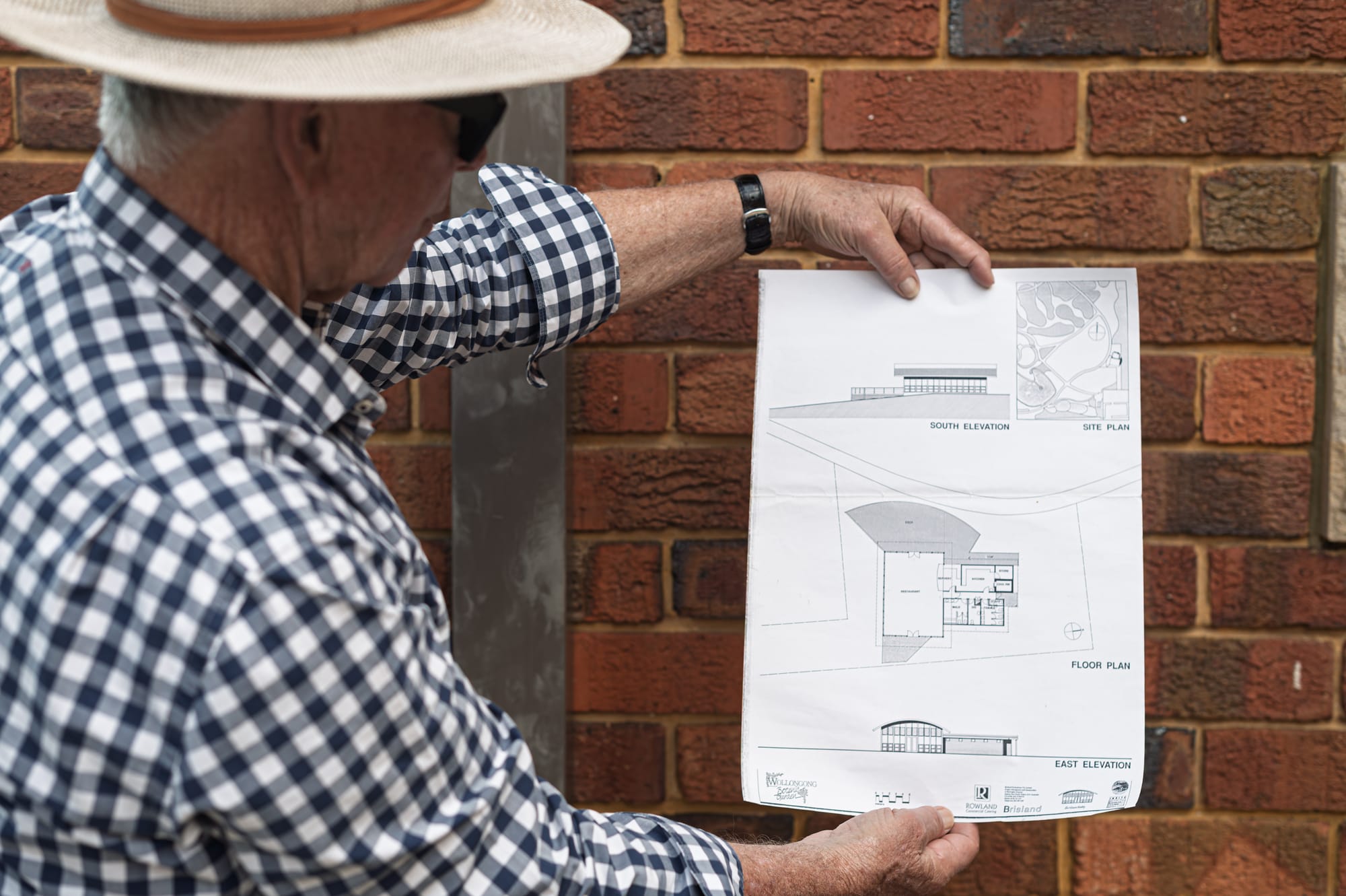 Barry Baird displays the Brisland plans for a tea house at Wollongong Botanic Garden