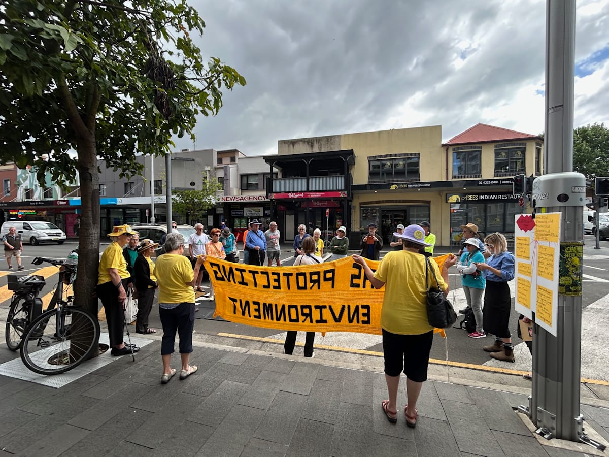 One of the organisers from the Illawarra Knitting Nannas Against Greed (IKNAG), Anne Kelly, told the crowd the government was radically changing the planning laws under the guise of fast-tracking housing to address the current housing crisis.