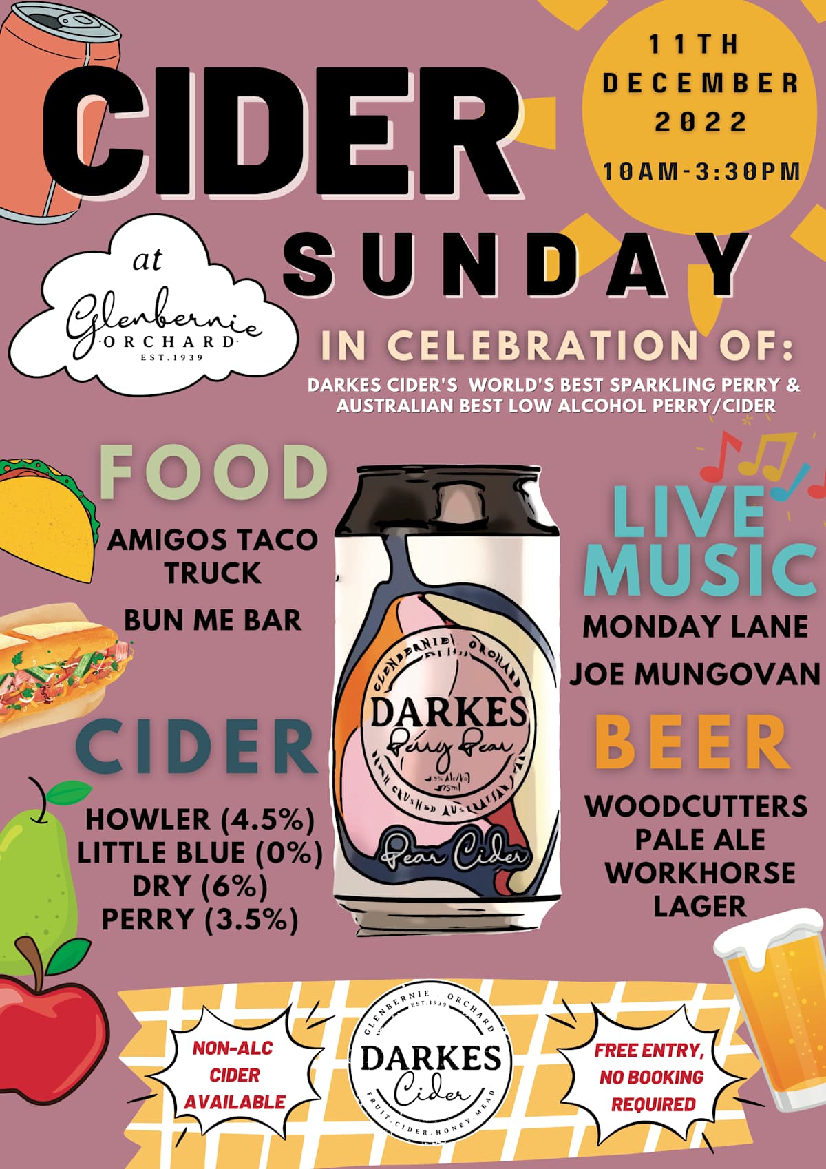 This month Perry was awarded a gold medal at the 2022 Australian Cider Awards and in 2021 it won Overall World’s Best Sparkling Perry at London's World Cider Awards. The medium-sweet Howler (the first cider produced by the Glenbernie team) and the Dry have also won international awards.