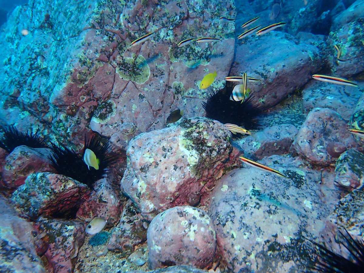 Last but not least, we are starting to accumulate a wealth of colourful tropical fish, from yellow tangs to butterflyfishes! Local diver Max Dall’Asta couldn’t believe it when he spotted at least three different species sheltering behind the same rock in The Gutter.