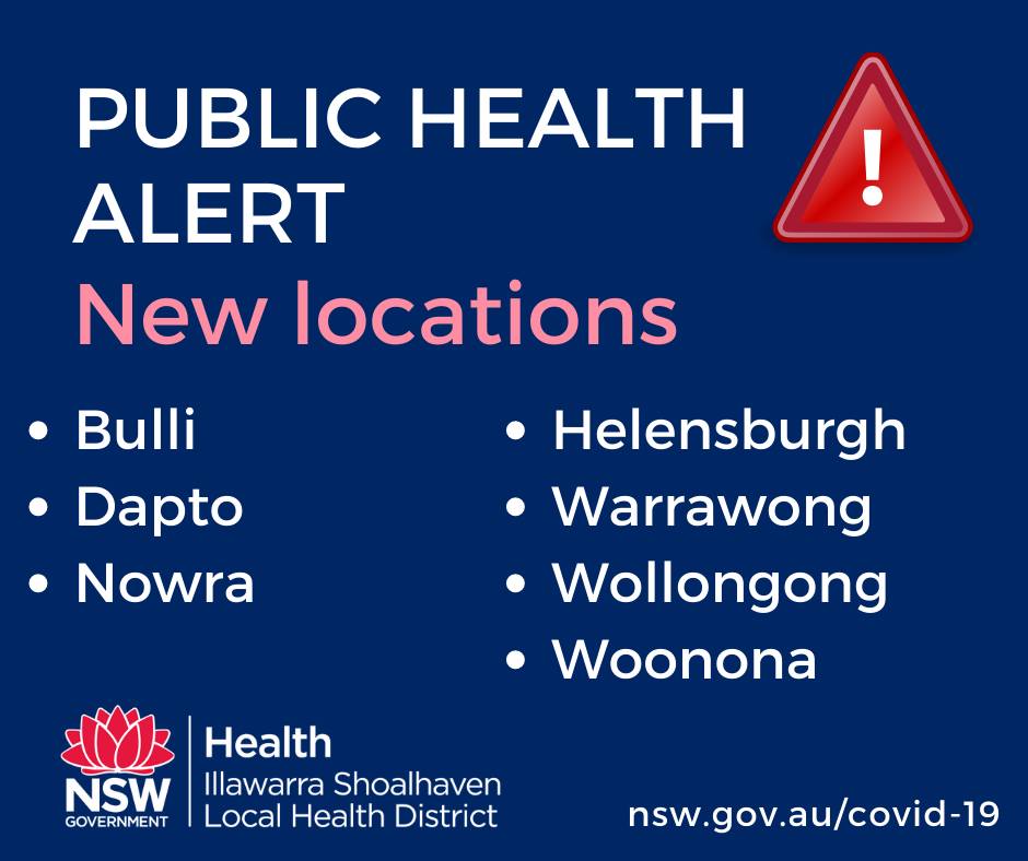 PUBLIC HEALTH ALERT – NEW VENUES OF CONCERN – BULLI, DAPTO, HELENSBURGH, NOWRA, WARRAWONG, WOONOONA, WOLLONGONG