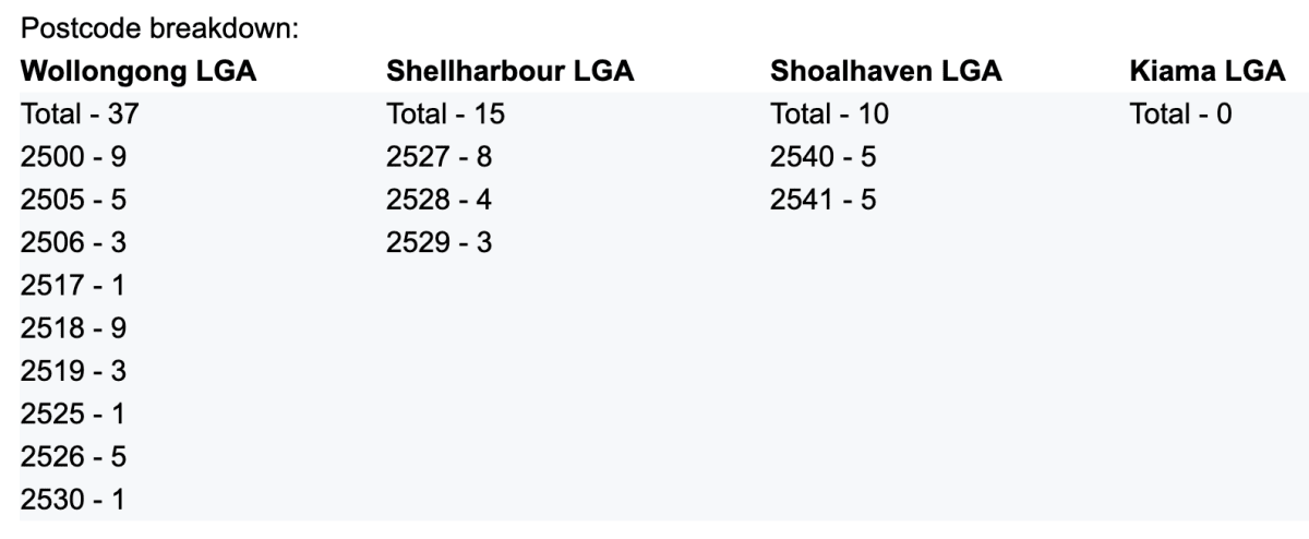 Below, a statement from the Illawarra Shoalhaven Local Health District today: