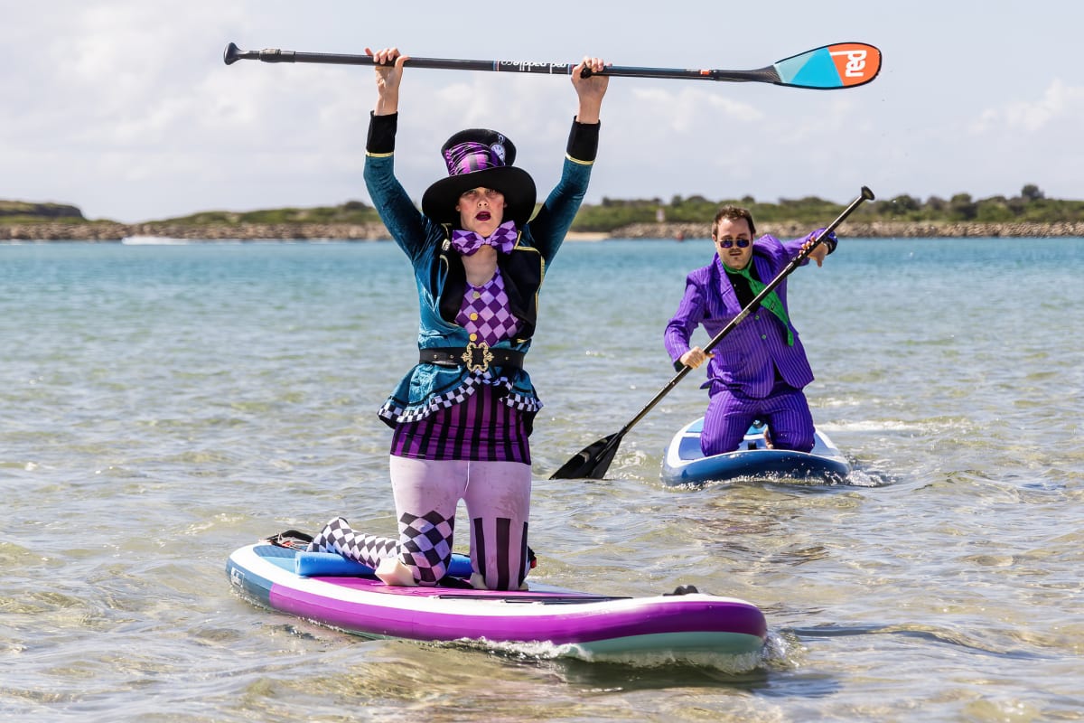 There’s nothing quite like seeing the Mad Hatter, Buzz Lightyear and an octopus battle it out in a Stand Up Paddle Boarding (SUP) race. Yet many visitors were lucky enough to witness just this spectacle last weekend at Lake Illawarra, with more SUP action following at Warilla Beach.