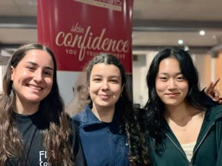 Inside, Dress For Success volunteers Gabriella, Eloisa and Minyu, all from Wollongong, showed their finds.