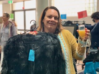 Down the aisles, an excited Belinda from Kiama, held up a black fur coat.