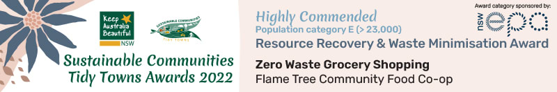 Congratulations to Flame Tree Co-op in Thirroul for receiving a 'Highly Commended' in the Resource Recovery & Waste Minimisation category in the 2022 Keep Australia Beautiful Sustainable Communities Tidy Towns Awards. Flame Tree works hard to refuse, reduce, reuse and recycle, and is always working towards zero waste. Come along with your own bags and containers and fill up from the bulk bins and containers, taking only what you need.