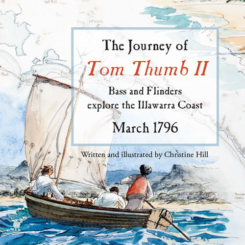 She’s also written and illustrated her own paperback, The Journey of Tom Thumb II: Bass and Flinders explore the Illawarra coast, March 1796. Publishing the story of the explorers’ adventures in a tiny wooden sailing boat – including getting dumped on Towradgi beach – drew on her long-time love of painting boats.