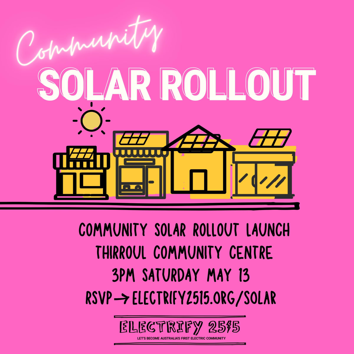 On Saturday, 13 May, Electrify 2515 is launching its Community Solar Rollout and we’d love you to join our free event.