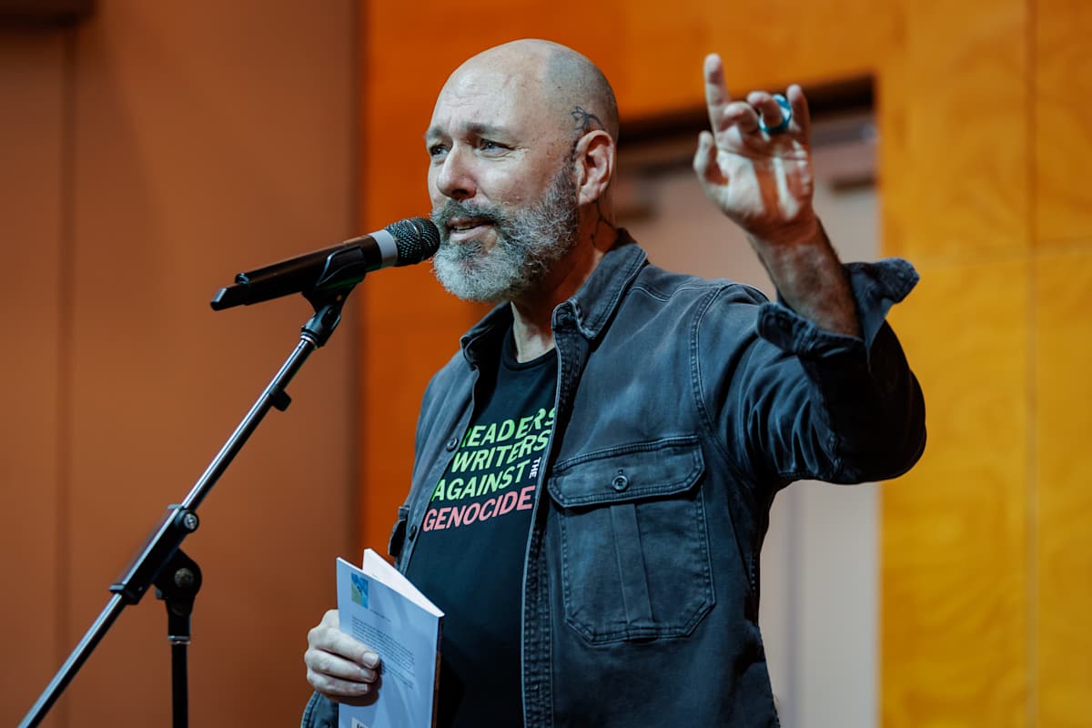 The show of support is evidence of a rising tide of humanitarian concern in the creative community over the Gaza war and what Palestine Laboratory author Antony Loewenstein described as “one of the most horrifically violent, complex genocides in the modern era”. In his Sunday talk, the co-editor of Declassified Australia described Australia as "complicit" in Israel's action through continued exports to Israel. "The Labor Government has been 110% behind what Israel is doing economically and practically," he said.