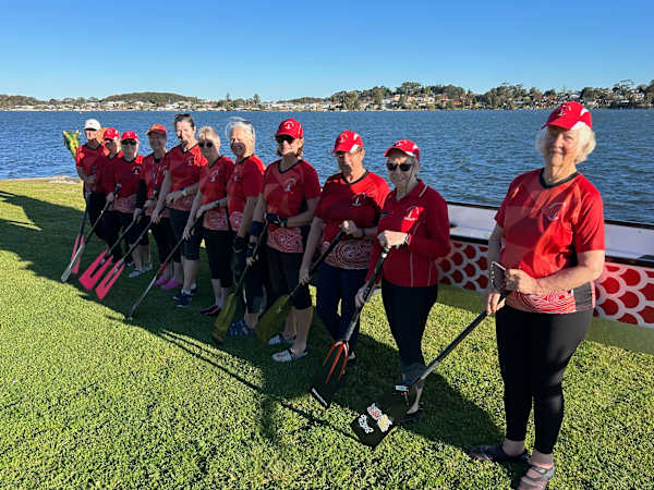 The Illawarra dragon boaters set out on Lake Illawarra four days a week from the Illawarra Rowing Centre at Warrawong, and this enthusiastic, supportive group proudly have as their motto 'Fun, Fitness and Friendship.'