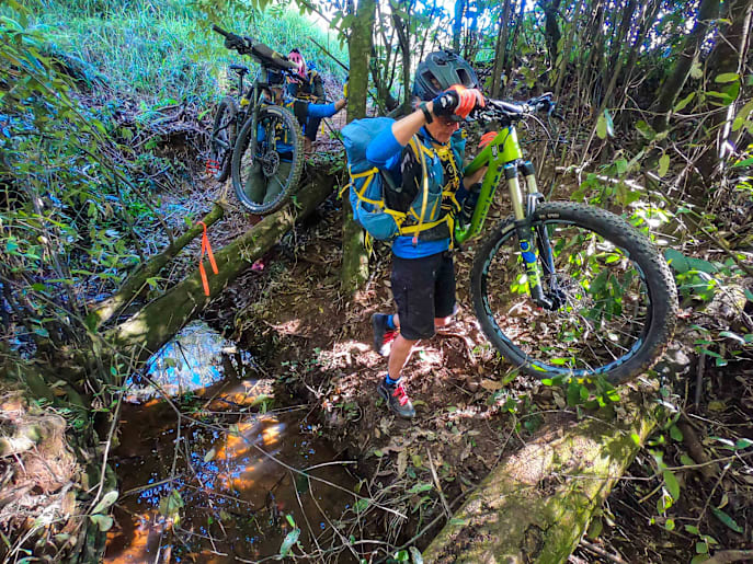 Coming into day two brought upon us its own challenges: everything from gravelly 33% gradient climbs on the bike; to check-points hidden deep in the scrub along high ridge lines and down steep gullies; to hike-a-bike episodes dramatically slowing our progress along difficult terrain; to strategic calls to miss several minor checkpoints due to time-constraints and health concerns; to not finding the golden arches to stimulate our weary minds with caffeinated beverages; to trails that appeared benign on the map but, in reality, were steep, loose, rocky and tiresome; to cold wet feet as we waded in knee-deep marshlands along our pitch-black route; to a declining enthusiasm for eating nut bars, trail mix, gels, and bananas to maintain our energy levels; to knees that got crankier as the end became nearer; and to yet another early morning of crisp cool air that had us freezing our asses off!