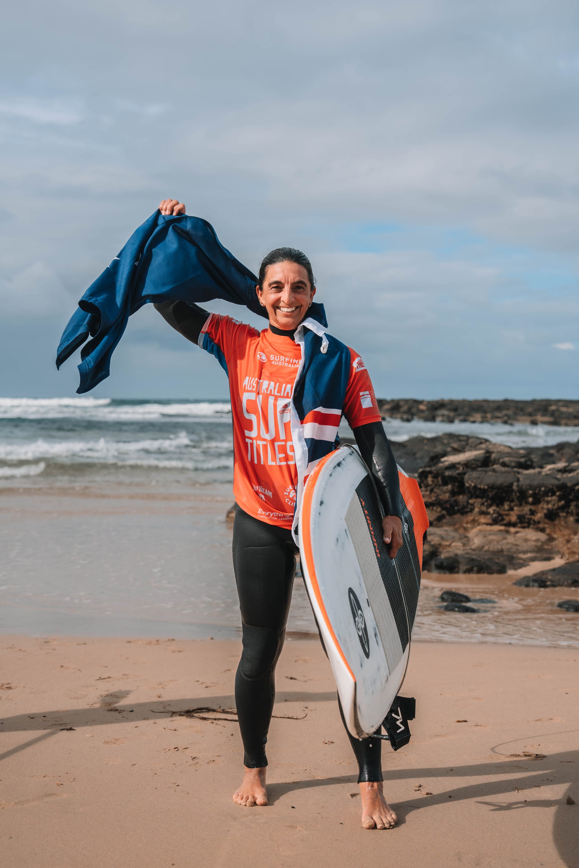 Rebecca Dunning, owner of Stand-up Paddle Boarding Shellharbour, was crowned 2025 open women’s Australian SUP surfing champion at the Australian titles at Phillip Island