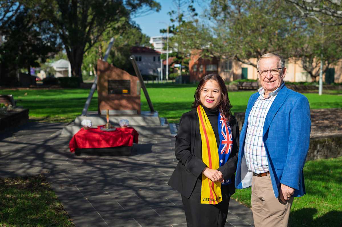 It was through the efforts of war veteran Ian Birch and Vietnamese refugee Teresa Tran OAM, the president of The Vietnamese Community in Wollongong, that the Vietnam War Comradeship Monument was built. The monument was unveiled at MacCabe Park in 2016. On ANZAC Day this year, during a ceremony commemorating 50 years since the fall of Saigon, Teresa said the Vietnam War Comradeship Monument wouldn't have been created without Ian's help.