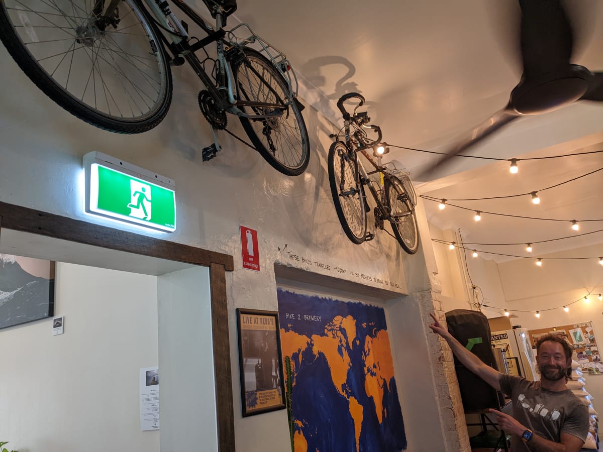 I chatted to Billy while he poured beers for the Thursday afternoon regulars. He told me of the kindness of people they met along the way, particularly after their bikes and all of their possessions were stolen in Washington state. Local police and emergency services staff took up a collection and handed over $1400 towards the purchase of new bikes. A local man they met in a hotel spoke to them about their plight, apologised for what had happened to them, then paid for their accommodation without saying a word.