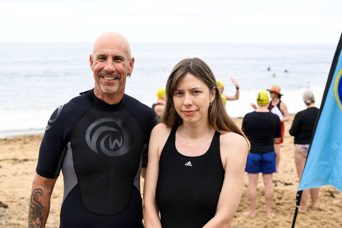 Mel: It’s inclusive. It’s not cliquey or competitive. You can rock up by yourself, and it’s not awkward. You don’t need to have much experience in the ocean. It’s very safety-orientated, with the rubber duck and board-riders ready to rescue you at all times. It’s quite a dramatic and unusual beach and can be wild at times, which makes for challenging and varied swims throughout the season.