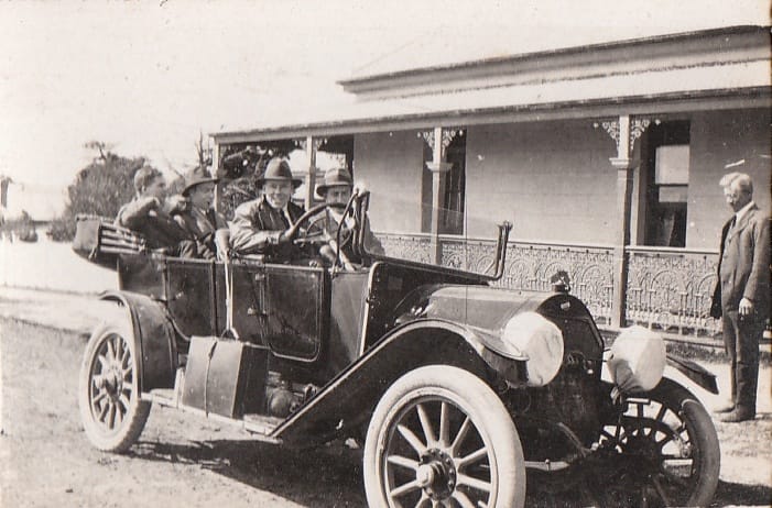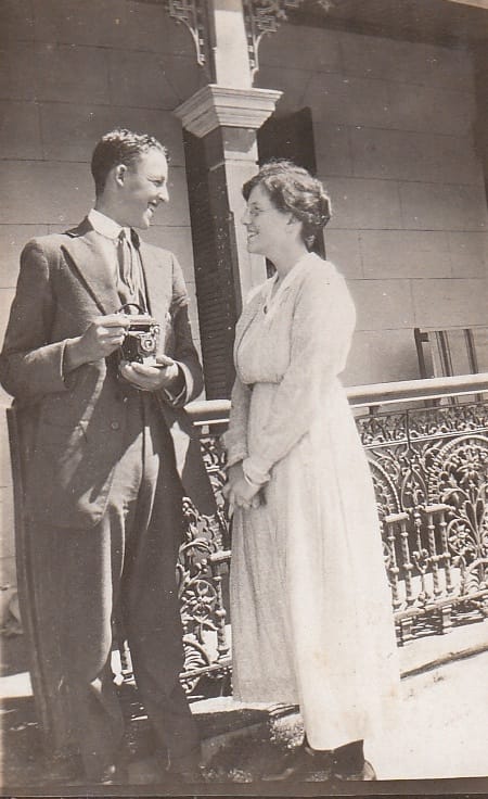 The Allen family outside their home, ‘Karamia’, c.1920. At right: Kathleen (Kaleen) and fiancée outside ‘Karamia’ c.1916. Photos: Discover Shellharbour