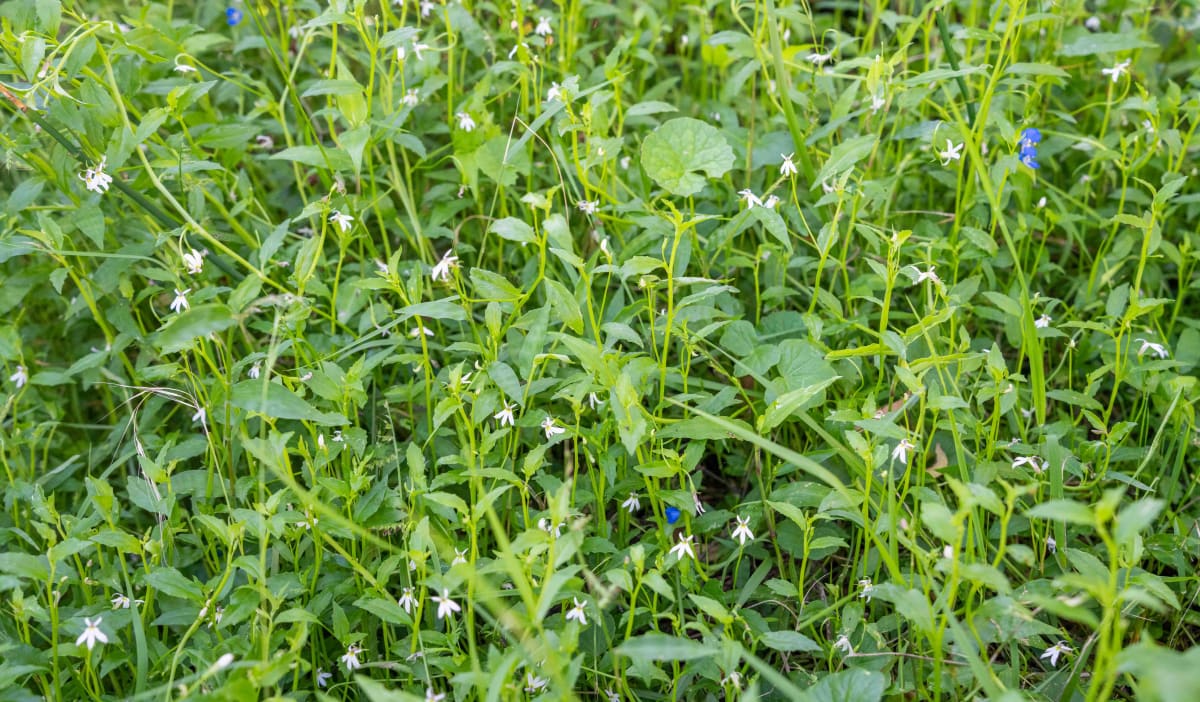 It can turn up uninvited in gardens and twine in among lawn, other ground-covers and even low shrubs, but it is often overlooked because when it's not in flower there just isn't that much to see.