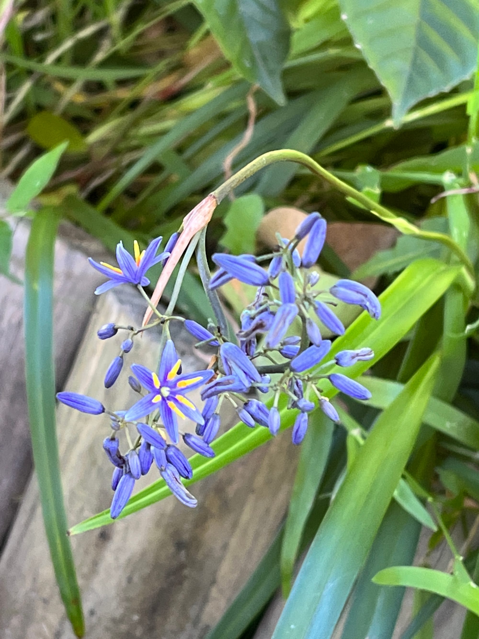 Flowers and fruit of the Blue Flax Lily. Photos: Illawarra Flame
