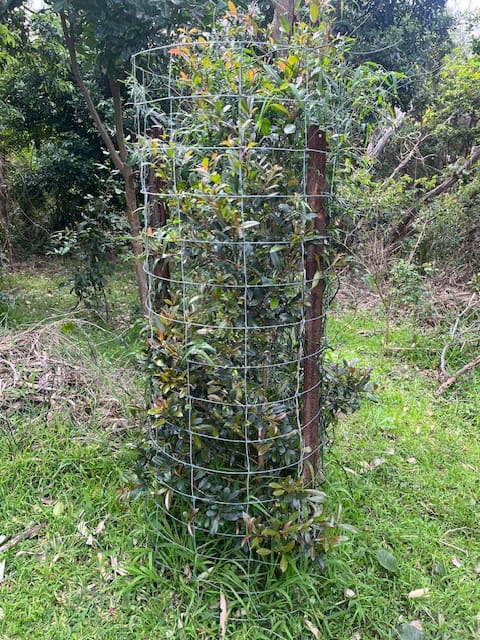 We planted about 190 Brush Cherry seedlings throughout the Reserve, and where necessary, protected them from deer with cages.