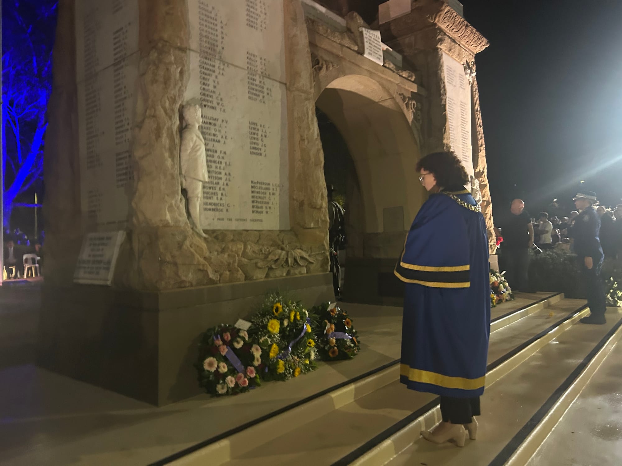 "Monuments like this were established across Australia and had huge significance in the local communities in which they were erected. Profound significance to those who served alongside those listed as dead, and to those who mourned for the rest of their lives the loss of husbands, sweethearts, fathers, uncles, brothers, sons, and friends. Loved ones who would never come home, left in a foreign field. Some in unnamed graves known only to God. Some lost in the mire, some lost in the air, or at sea.