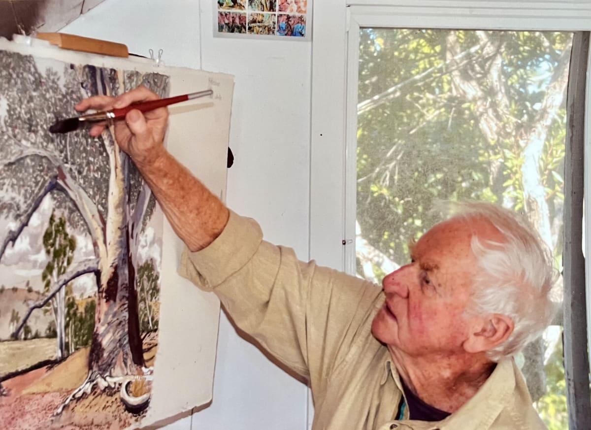 Hal is now working on a series of watercolours of sand dunes and still painting the iconic River Red Gums for which his uncle Douglas is renowned. The six-year-old has come full circle.