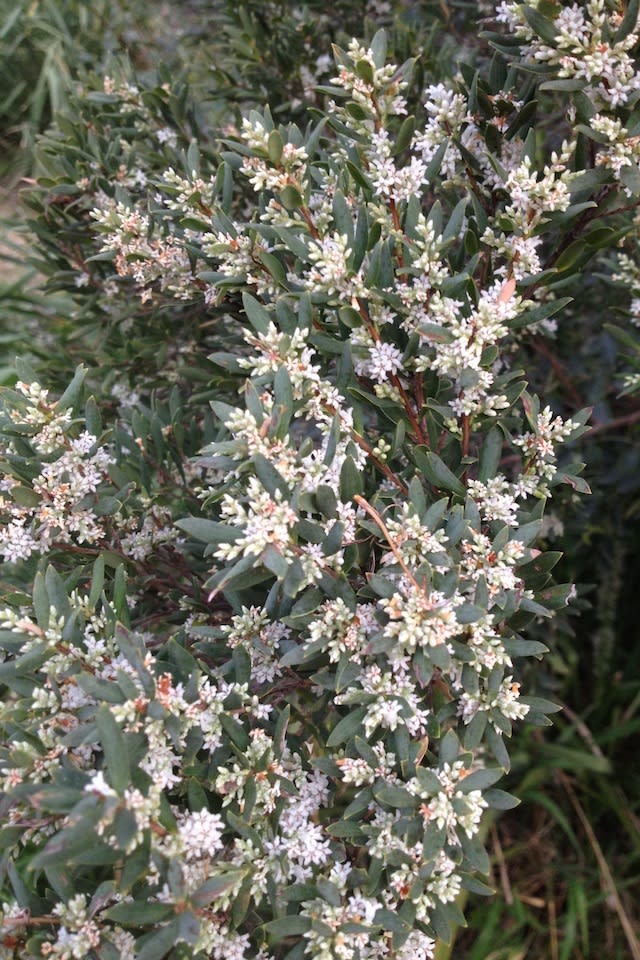 Sorry about the headline, it sounds utterly crazy to me too, but that's the best way I can 'translate' the scientific name of one of our most gorgeous, stunning, attractive and resilient coastal shrubs, - Leucopogon parviflorus - which basically...