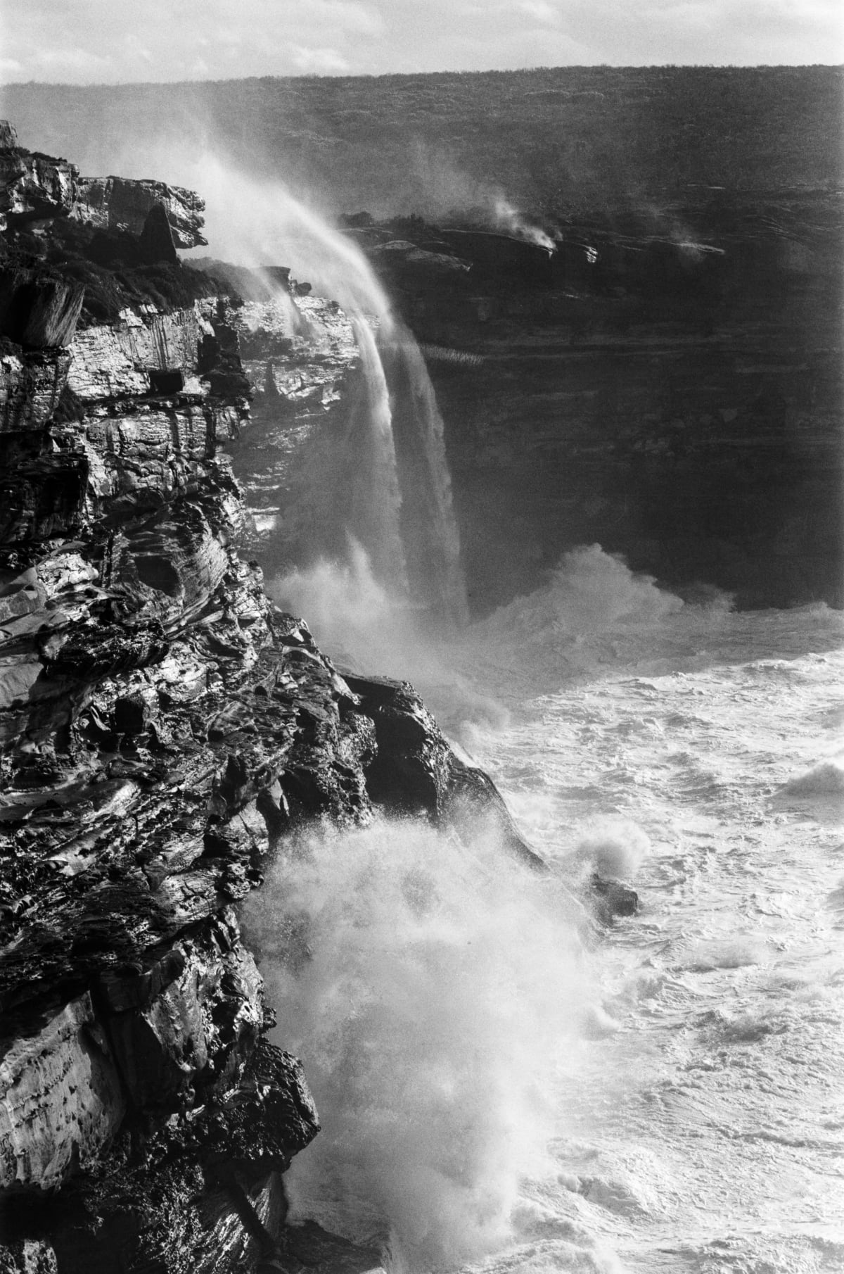 Earlier in the year I started frequenting the Curracurrong Falls. The waterfall is usually just a trickle into the ocean but one particular morning I lucked into a really rare combination of intense La Niña rainfall, huge swell and magic light.