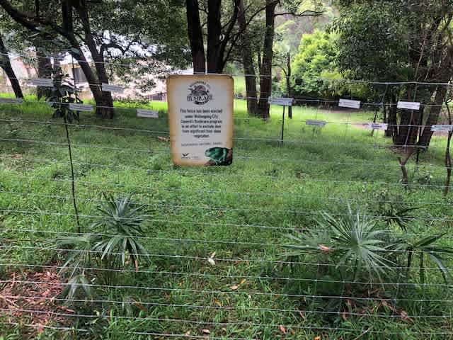 Stands of Cheese Trees (Glochidion ferdinandi), Mutton Wood (Myrsine variabilis), Guioa (Guioa semiglauca), Celery Wood (Polyscias elegans), Murrogun (Cryptocarya microneura), Breynia (Breynia oblongifolia), Cabbage Tree Palm (Livistona australis), Trema (Trema tomentosa) and Sandpaper fig (Ficus coronata) are coming up.